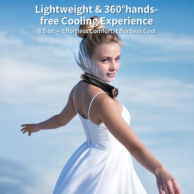 - 【Hands - Free & Ultra - Lightweight】Weighing only 8.5 ounces, the hands-free neck fan comfortable for extended wear. The hands - free design lets you go about your daily activities freely.