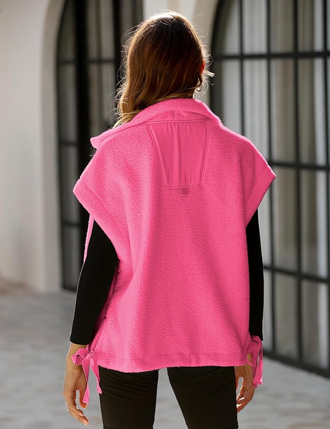Athlisan Womens Fleece Vest Casual Sleeveless Button Down Sherpa Jacket Outerwear with Pockets