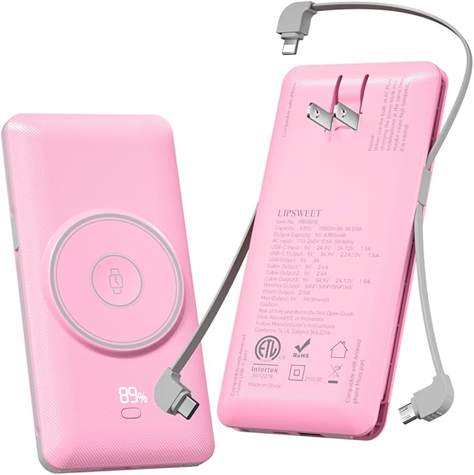 - 6 Devices Charging Simultaneously: This portable charger battery pack features 5 outputs, including 3 cable outputs and USB-C & USB-A outputs. At the same time, you can use wireless charging on the front of the power bank to charge your mobile phone or watch, Charge up to 6 devices simultaneously. For Mag-Safe power bank supports 5W, 7.5W, 10W and 15W wireless charging; USB-C ports support Power Delivery up to 20W, allowing for fast charging of USB-C enabled devices; USB-A ports deliver up to 22.5W, supporting Quick Charge 3.0 for rapid charging of legacy devices