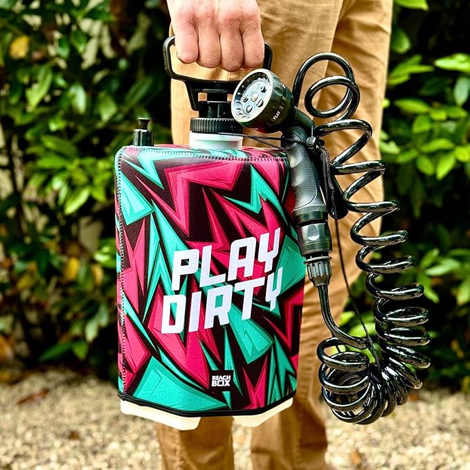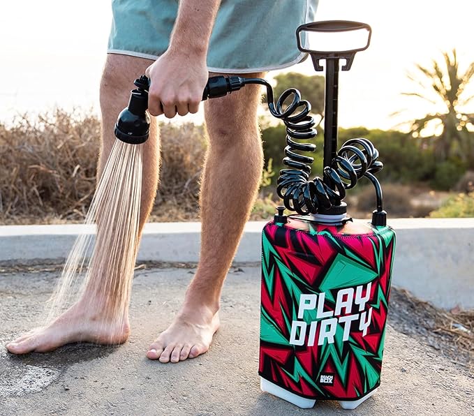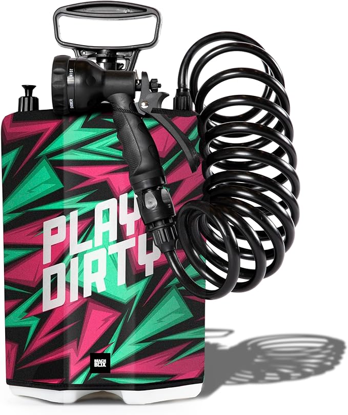 BeachBox Portable Shower Tank – Insulated Hot & Cold Water Tank for Camping, Beach, & Outdoor Adventures – 1.3 Gal Capacity – Multi-Spray Shower Gun – Easy Fill & Carry