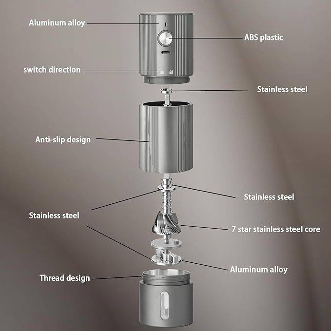 - 【Large Capacity Battery】:The coffee grinder's powerful 1600mAh battery allows you to prepare 15-20 cups of coffee. Enjoy longer use and less frequent recharging.USB rechargeability is simple and convenient, making it easy to use it at home, in the office or camping and traveling.