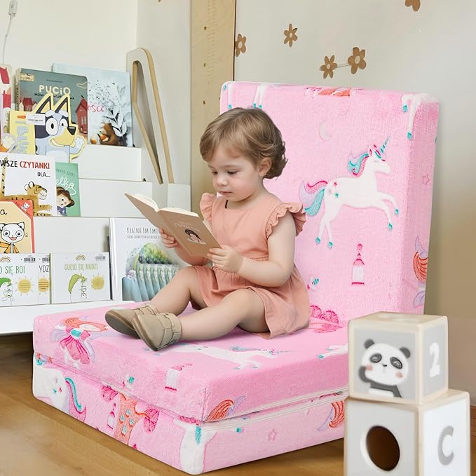 MeMoreCool Foldable Floor Mattress for Kids, Glow Fairy Toddlers Trifold Nap Mat, Kids Folding Mattress Portable Sleeping Futon for Daycare or Floor Bed, 57x22 Inch Pink