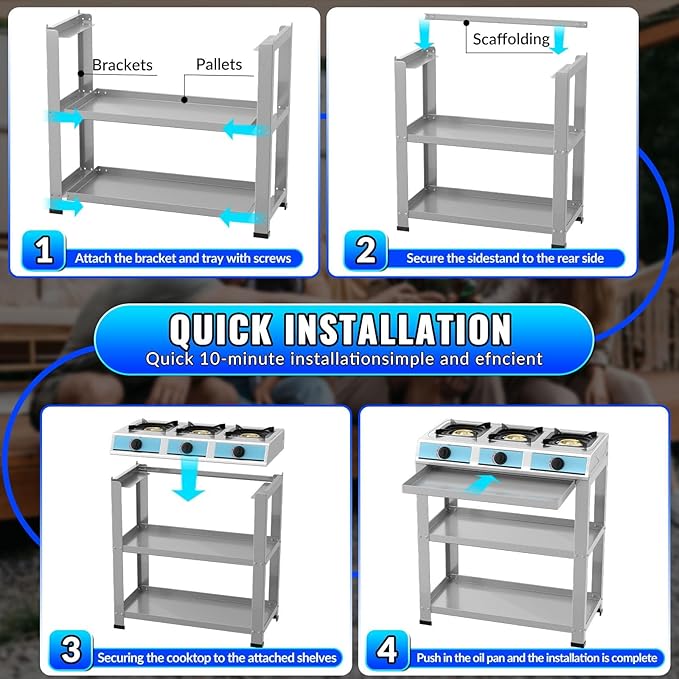 - 【User-Friendly Design】 - Designed for convenience, this outdoor stove can be assembled in under 10 minutes. It includes a removable stand, along with a CSA-certified gas regulator and hose, ensuring safe and easy operation.