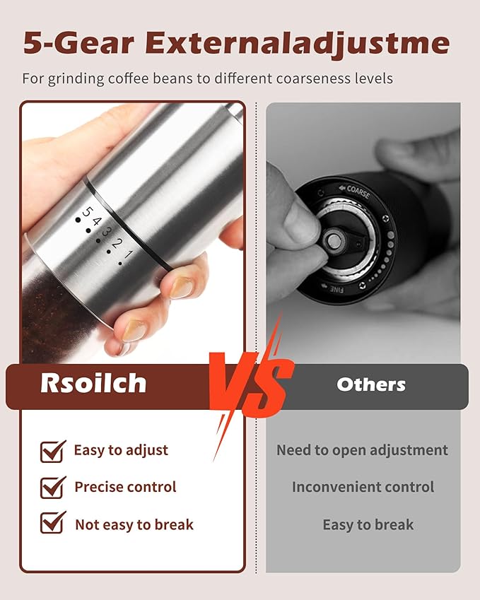 - Portable and Stylish: Designed to be compact and travel-friendly, this hand-held coffee grinder is perfect for your daily grind whether at home or on the go.