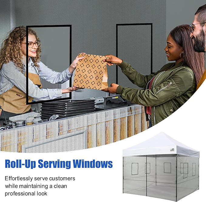 - BREATHABLE MESH WALL:Fullsided netting for all-round protection and provide excellent ventilation on sultry summer day, keep cool. The best choice for small business,3 panel with W/ windows and the back entry door.
