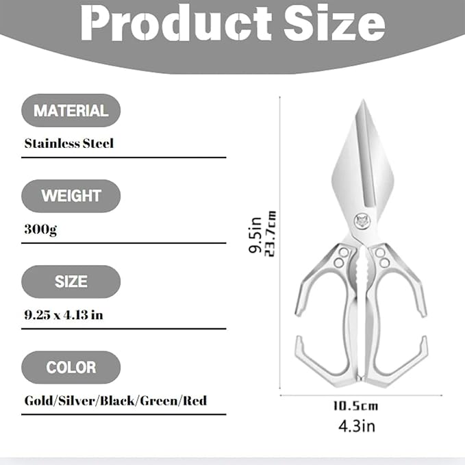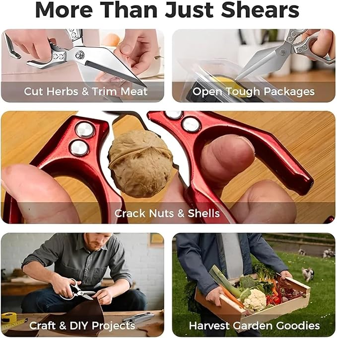 - 【Multifunctional Heavy-Duty Kitchen Shears】 The Heavy-Duty Kitchen Shears feature hardened stainless steel, This kitchen scissors can not only handle meat and vegetables, but also open packaging bags and even easily crush nuts