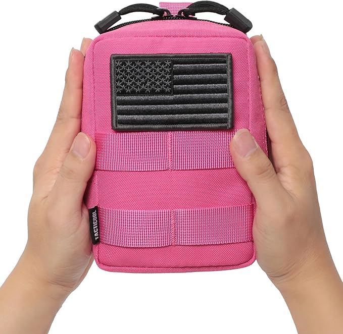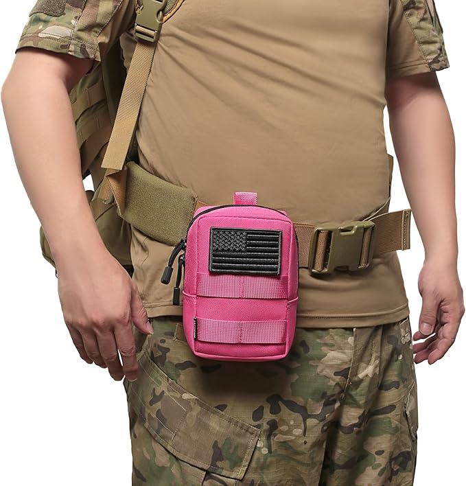 - One item includes two tactical pouches and two US flag patches. Molle pouch size: 6.1"L x 4.5"W x 2.2"T. The outside of the pouch is made of durable 1000D nylon for long time use. The inside of the pouch is made of water-resistant coating to prevent your items getting wet in damp environment.