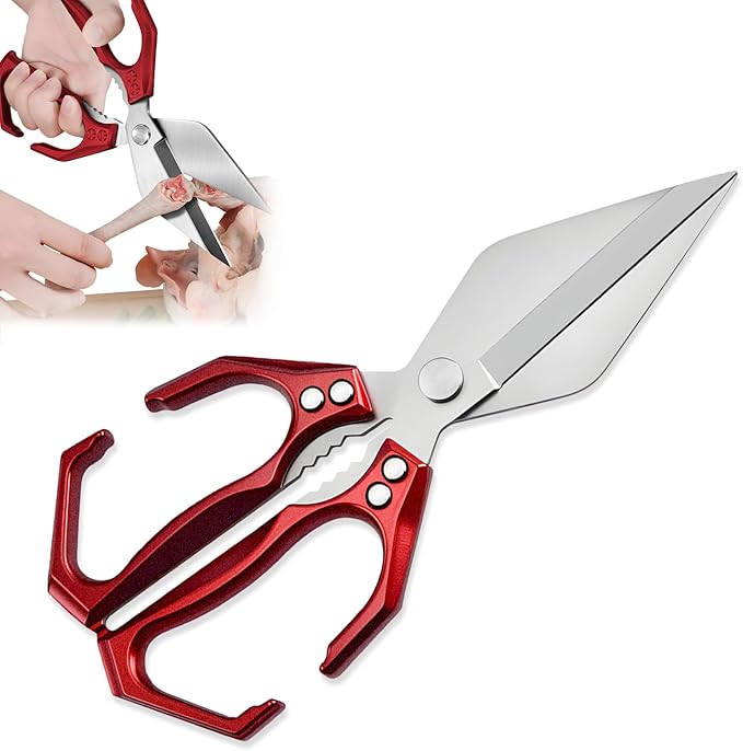 - Multifunctional Heavy-Duty Kitchen Shears:Crafted with premium blades, these heavy-duty kitchen shears easily cut through chicken, turkey, and even bones. Ideal for deboning, meat preparation, and other tough kitchen tasks, their durable construction ensures reliable everyday use