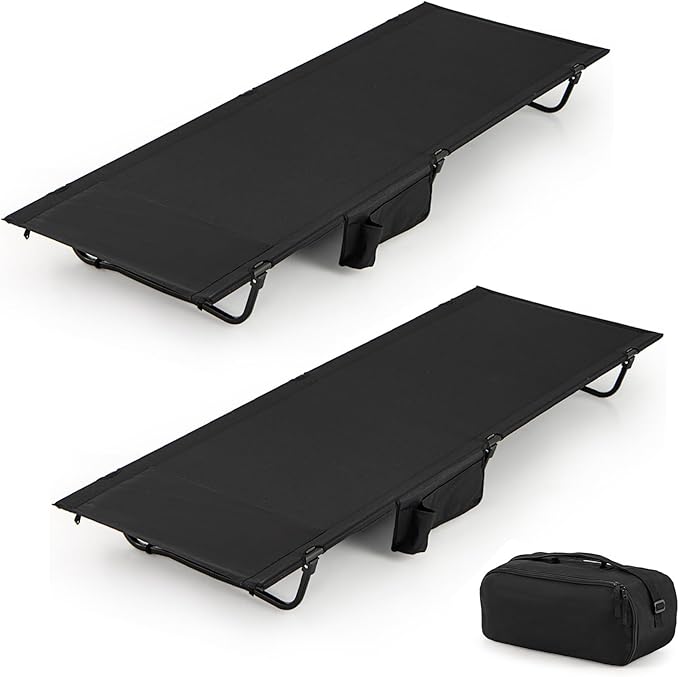 GYMAX Ultralight Camping Cot for Adults, Portable Folding Camping Bed w/Side Pocket, Carry Bag, Compact Sleeping Cot for Outdoor Backpacking Travel Hiking Home Beach, Supports 330 LBS (2)