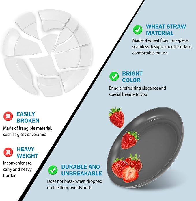 - [Easy to Clean]These wheat straw dishes are extremely convenient when it comes to cleaning. They are dishwasher safe.Their smooth surface doesn't trap grease easily, so hand-washing is also a breeze.