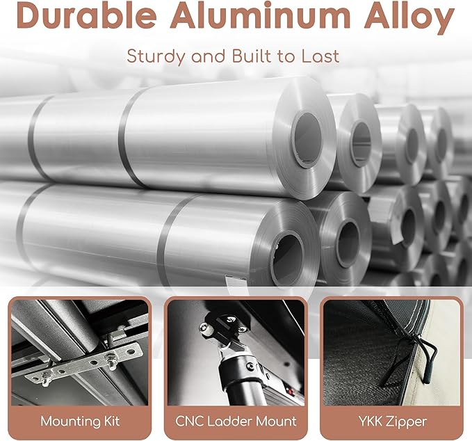 - Aluminum Frame & Easy Setup: Designed with a foldable structure, this tent opens effortlessly—no assembly needed. Built from aerospace-grade CNC aluminum, it’s rust-resistant, corrosion-proof, and strong yet lightweight. And the base comes pre-equipped with dual mounting rails for quick and easy installation. With just a few bolt adjustments, you're road-ready in minutes. Your next adventure starts here—faster and easier than ever before!