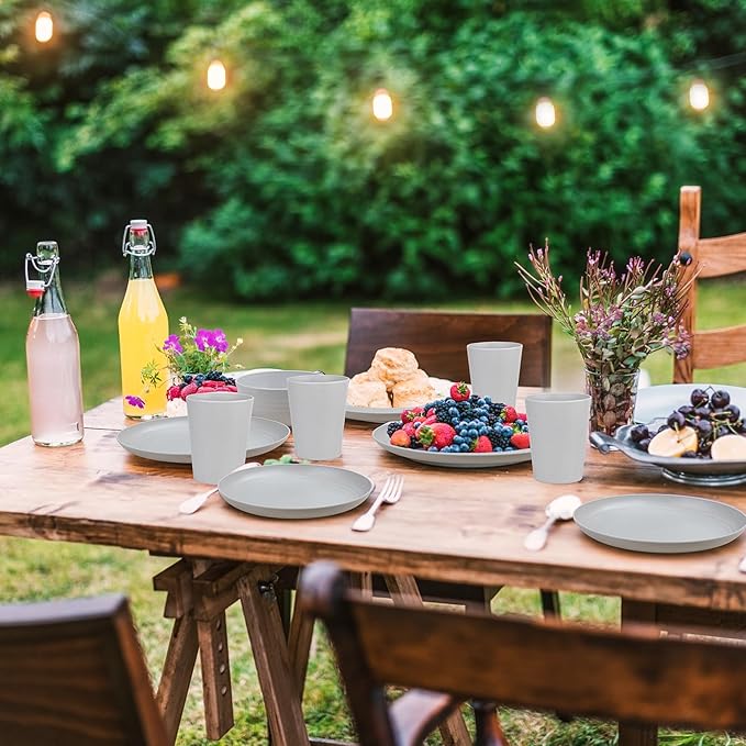 Supernal 16pcs Light Grey Plates and Bowls Dinnerware Set, Unbreakable Reusable Plate,Reusable Plastic Plate Set for 4, Include Dinner Platos, Dessert Platos, Cereal Bowls, Cups for Kitchen & Camping