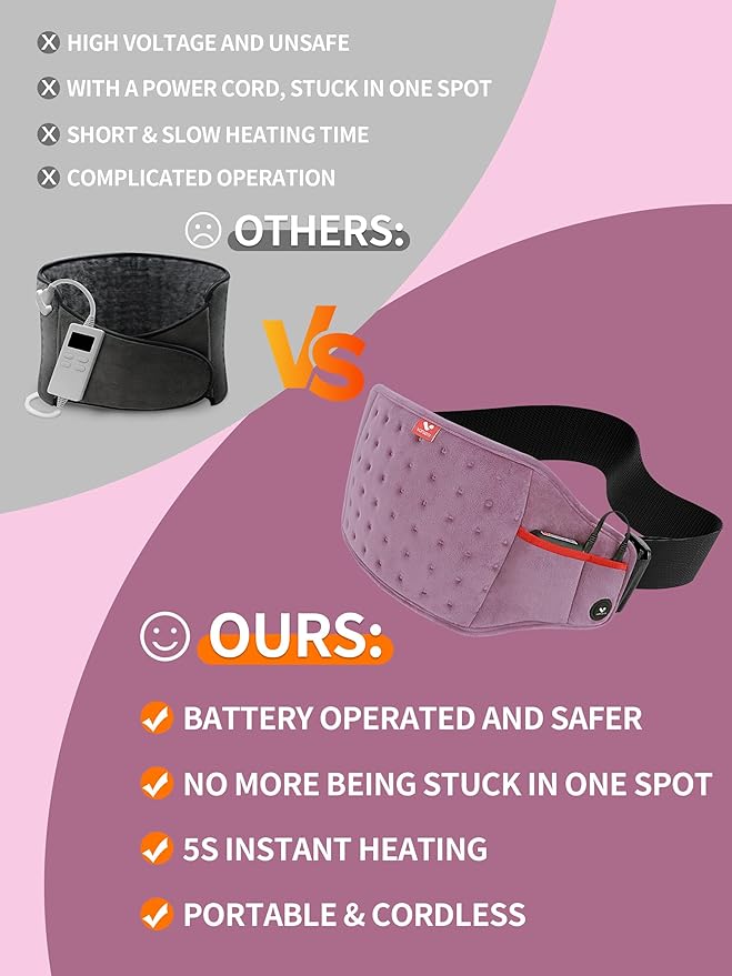 - Portable Cordless Heating Pad: Compared with other plug-in heating pad, Vofuoti portable heating pad offer a rechargeable battery, you can even enjoy heat while you're cooking, doing housework or playing outdoors, etc. No more being stuck in one spot