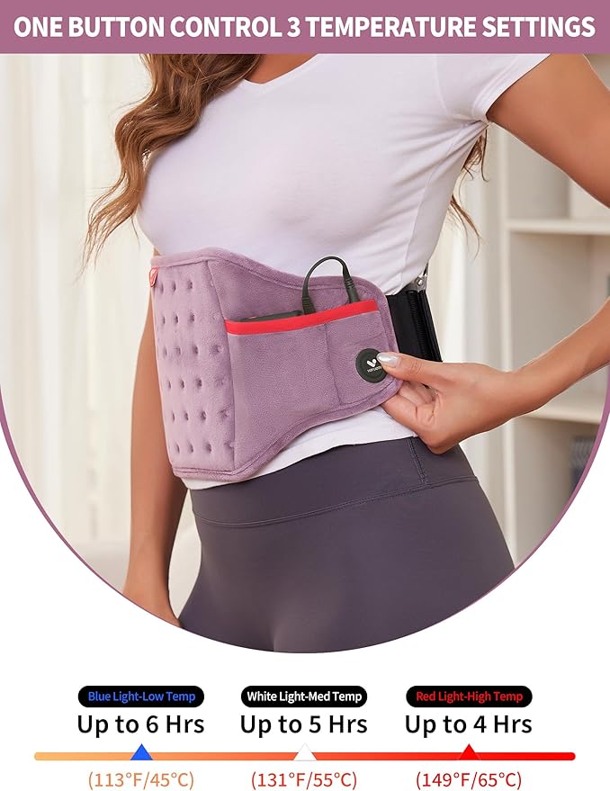 Vofuoti Cordless Heating Pad, Portable Heated Pad with Battery and 3 Heat Settings, Rechargeable Electric Heating Pads for Back, Abdomen, Gifts for Women Men (Purple, 8"x22")