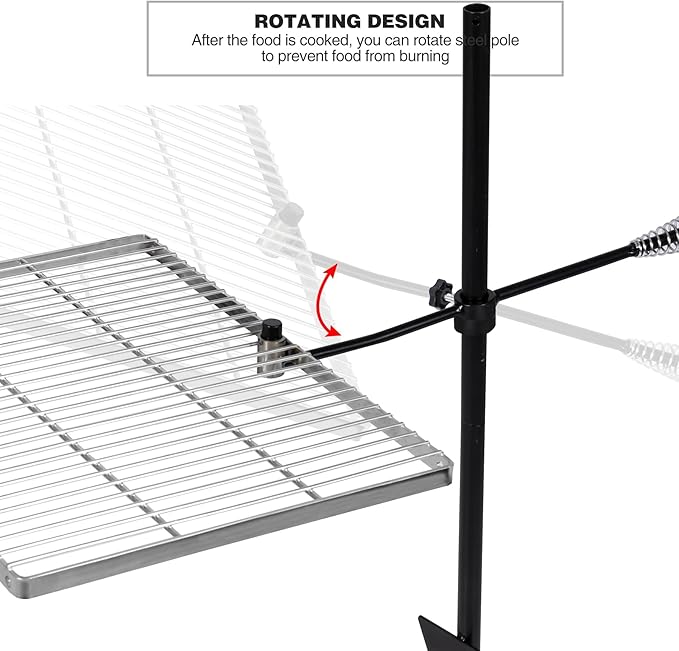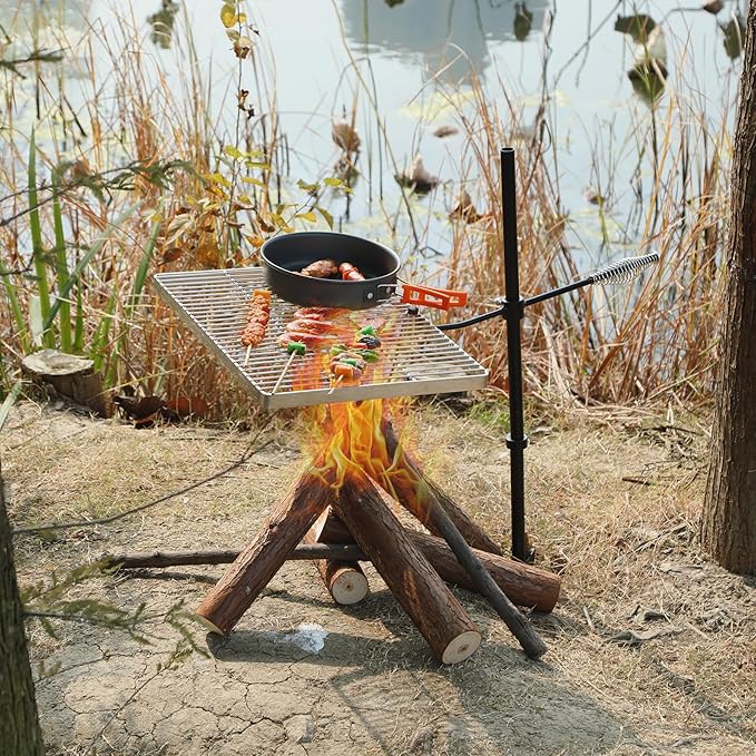 - Wide Application: Our campfire swivel grill can be used to roast various foods, beef, vegetables, fish, chicken, and so on. You can enjoy wonderful camping time with your friends and family in the courtyard, on the beach, and on the grass.