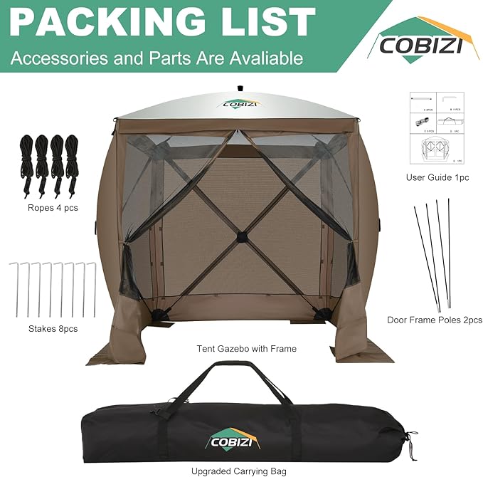 - ✅【Upgraded Premium Fabric & 5-year Warranty】 Our COBIZI 6x6 screen gazebo features high-density 1800mm/300D Oxford cloth, surpassing the standard 1500mm density found in most competitors. The fabric is enhanced with a PU coating, providing excellent resistance against fading, water, and UV rays, ensuring long-lasting protection. Enjoy peace of mind with our 5-year warranty! Have questions about our Gazebo? Contact us anytime for help. Discover the quality and reliability that sets us apart!