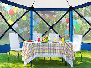 - ✅【Comprehensive Packing List & Warranty】 Your purchase includes 1 canopy tent Gazebo 12x12 with Frame, 1 Upgraded Carrying Bag, 2 Door Frame Poles, 8 Stakes, 4 Ropes, and a User Guide. If any accessories are missing or damaged, please contact our customer service for prompt replacement. Note please: Upon first opening, the screen tent may appear inside out. This is intentional for compact storage. Do not attempt to reverse it, as it may cause damage to the gazebo.