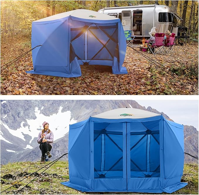 COBIZI 12x12 pop up Gazebo on Clearance Screen Canopy Tent, Camping Outdoor Screened Gazebo with Sidewalls, Portable Hub Tent with Carrying Bag and Ground Stakes, Blue