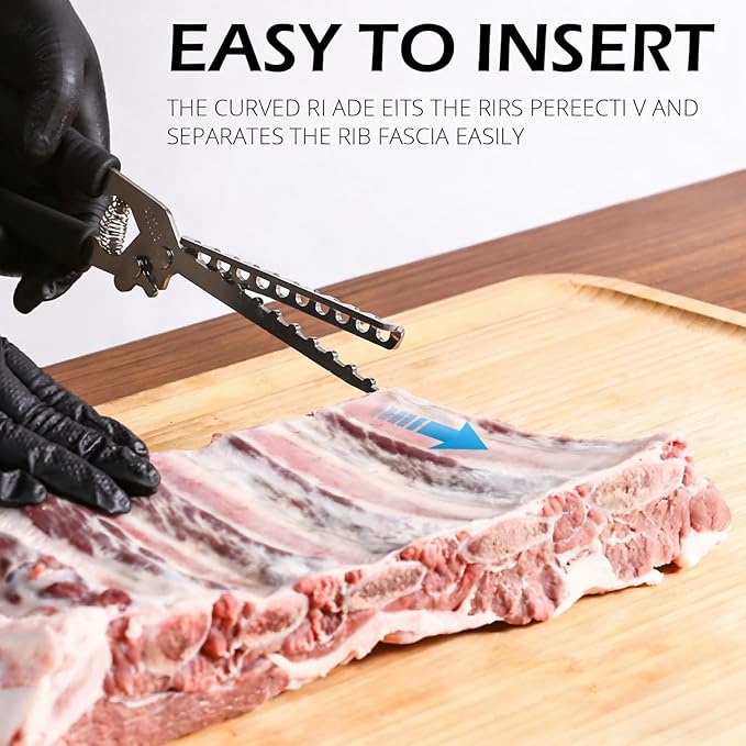 - 【Multi-functional Rib Membrane Removal Tool】This grilling accessory is specifically designed for removing fascia and fat. Its specially designed curved tip allows for smooth and precise removal of fascia, while its sharp edges easily handle fat removal.